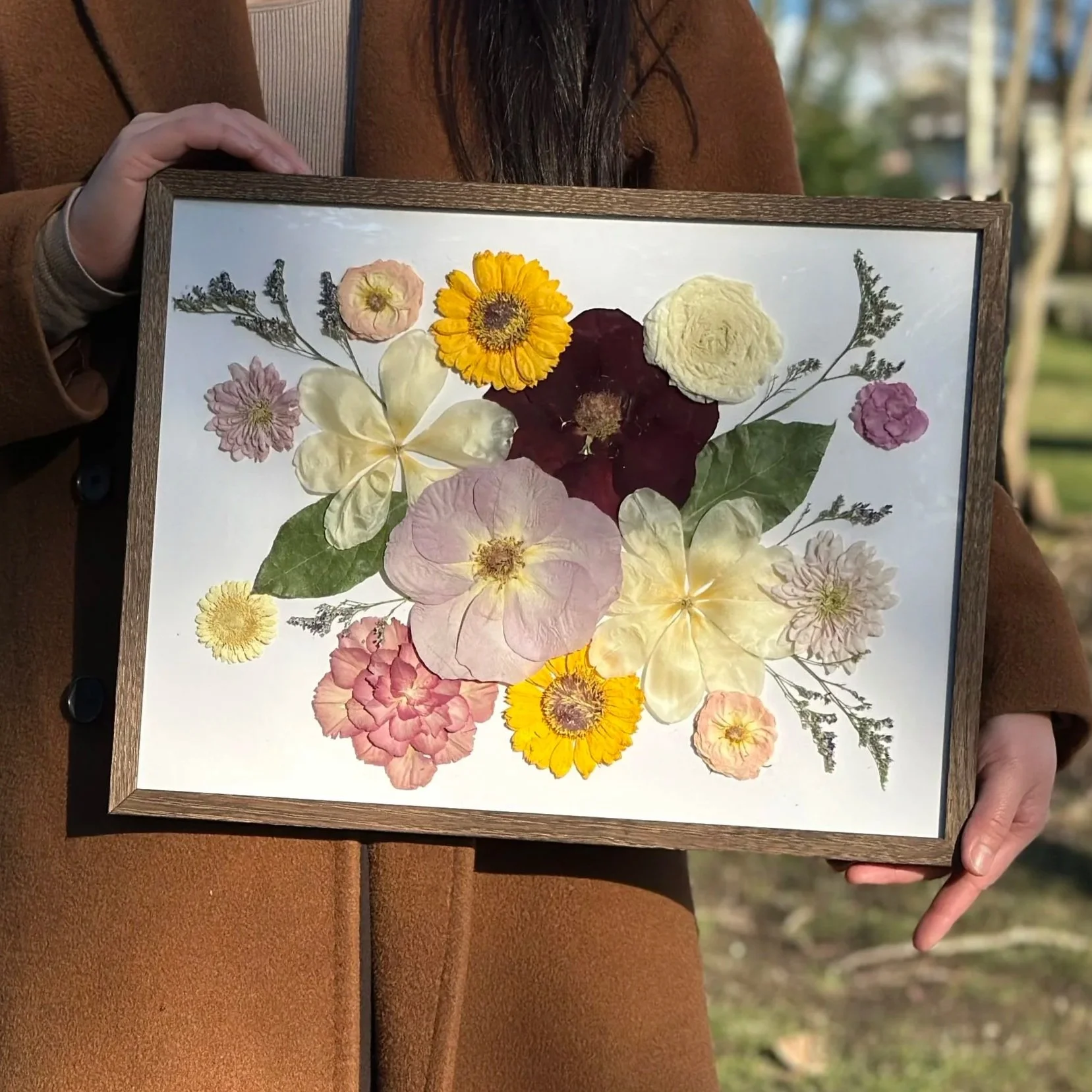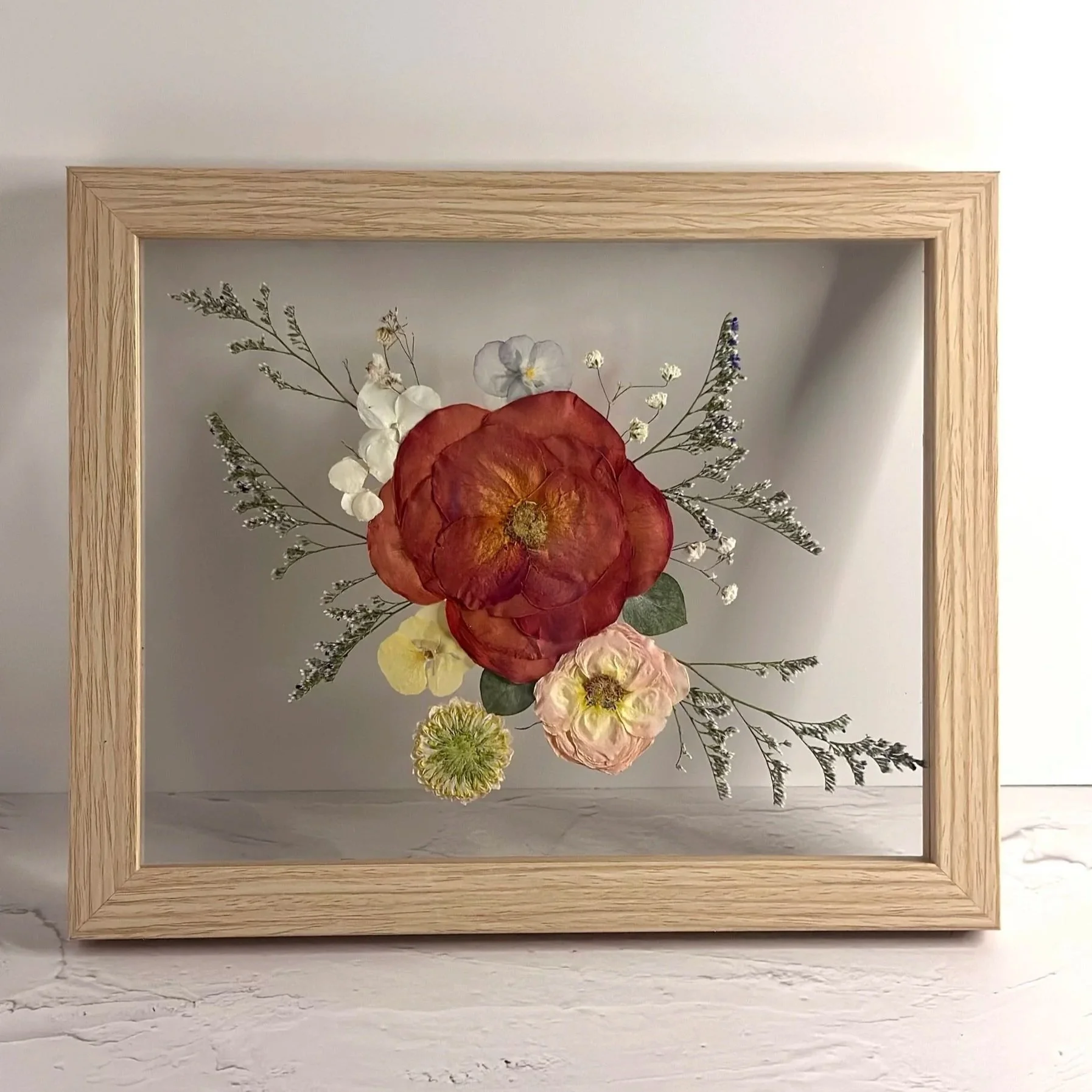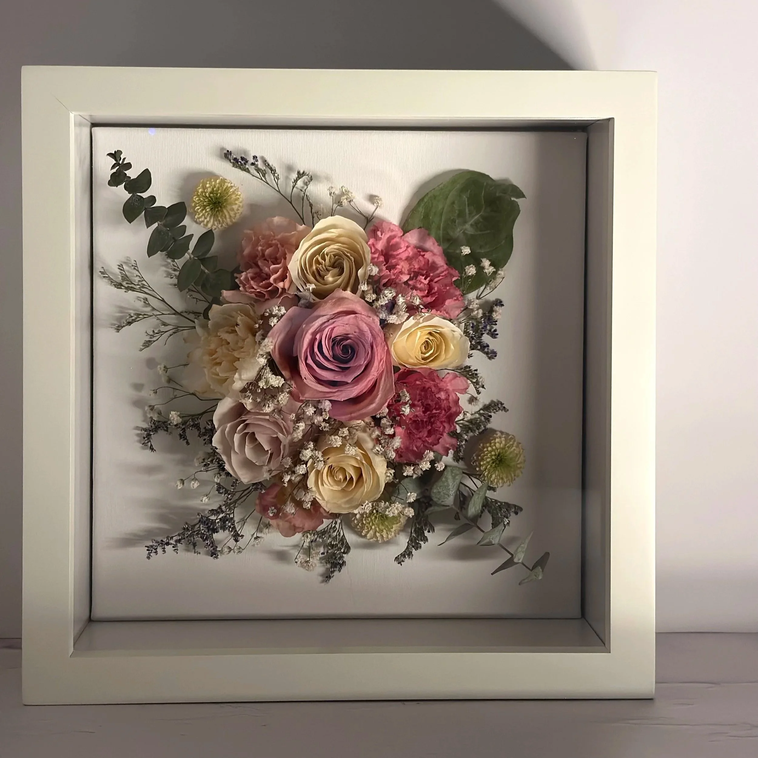 We will create a design proof for your review, and upon your approval, your arrangement will be carefully secured onto your chosen frame or shadow box.